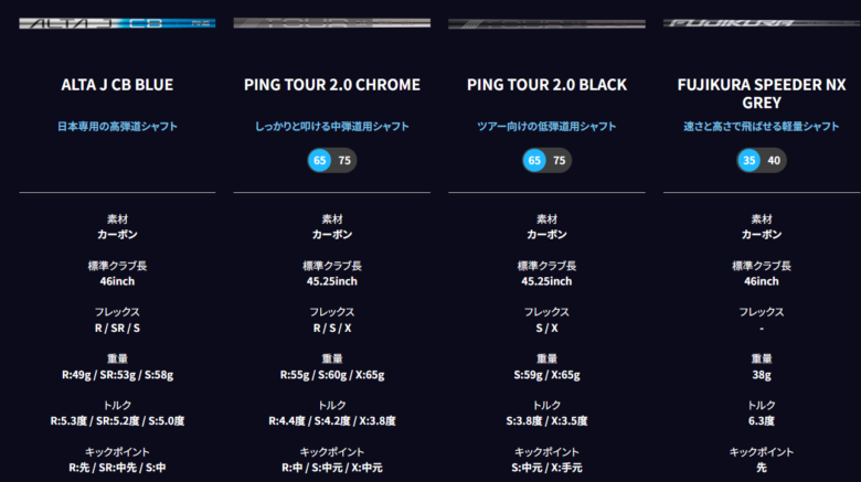 ただ、純正シャフトで30g台が選べたり70g台のXシャフトを選べたりと、本来社外シャフトを検討するようなスペックでも純正シャフトで選べる点は評価できます。